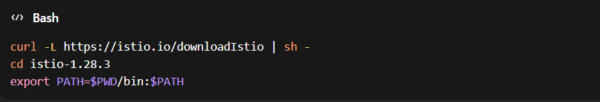 Bash command to download and set up Istio 1.28.3 using curl and environment path configuration for Ambient Mesh installation
