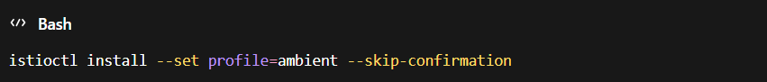 istioctl install command with ambient profile enabled and skip confirmation flag for deploying Istio Ambient Mesh in Kubernetes