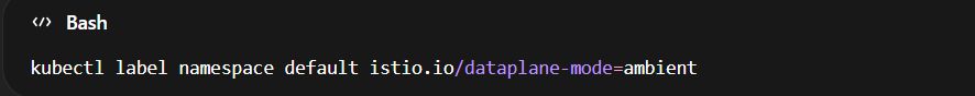 This ensures workloads in the namespace to participate in Istio Ambient Mesh.