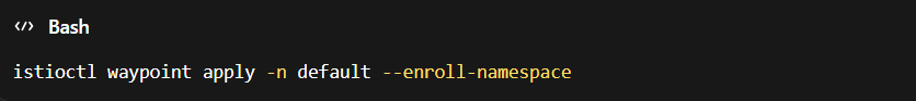 Istioctl command to apply waypoint proxy in default namespace with enroll namespace flag in Bash terminal