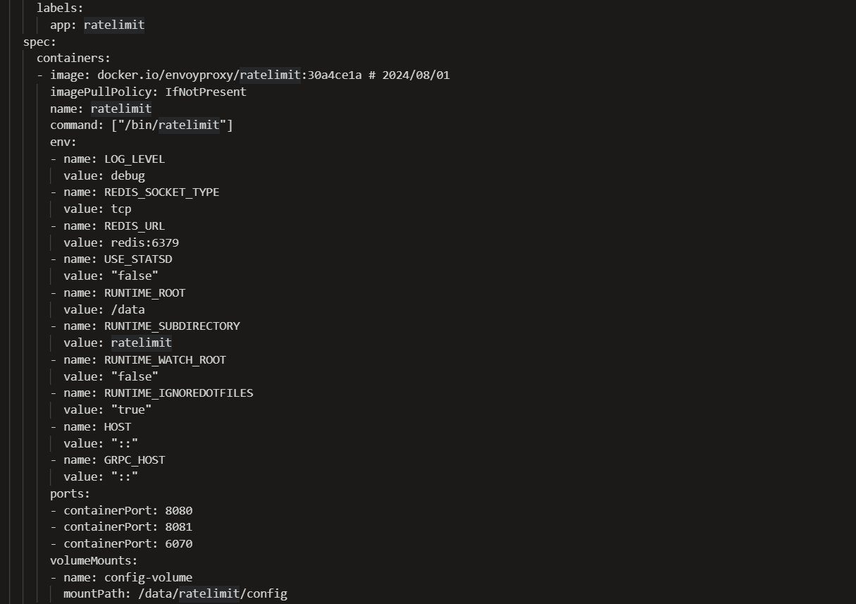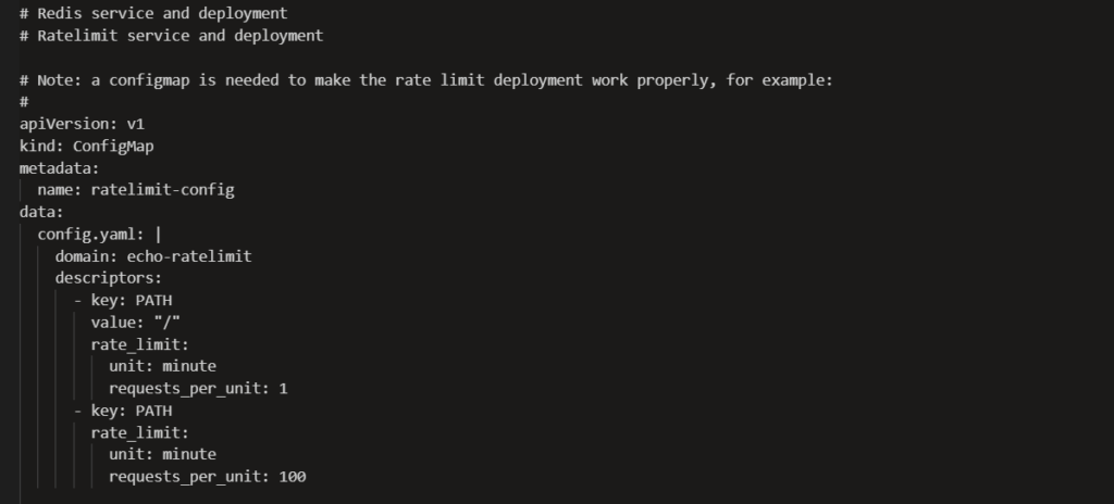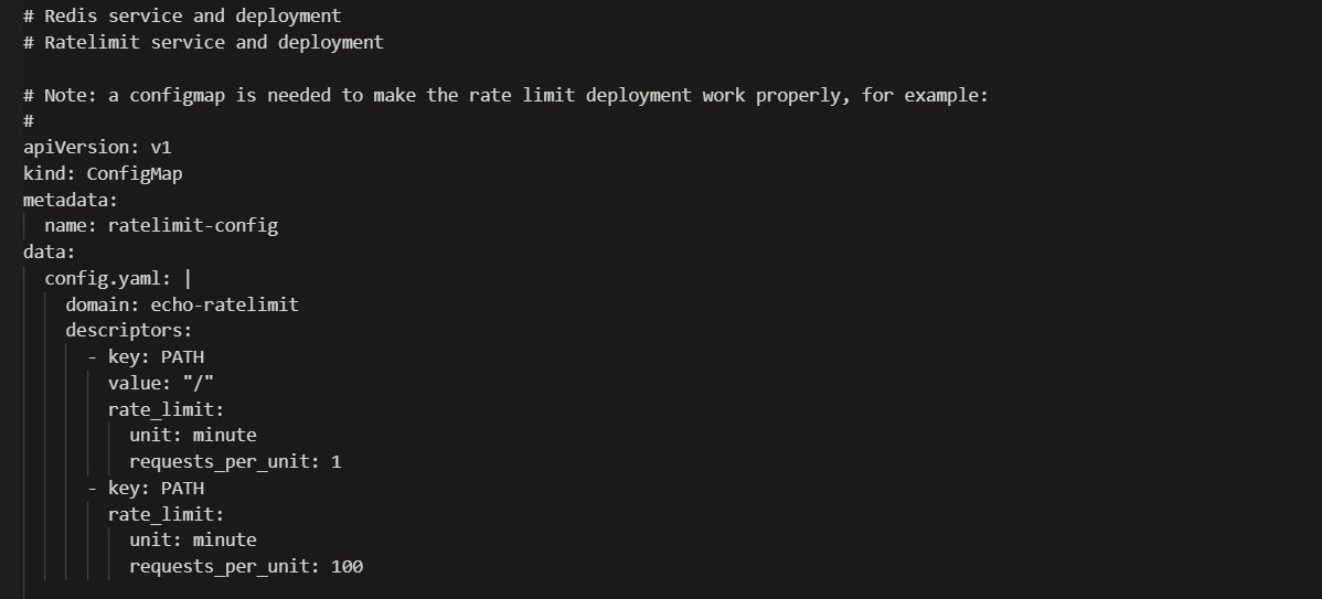 • Rate Limit Service – This is the brain. It receives rate limit checks from Envoy, evaluates them against configured rules, and says ‘yes, allow it’ or ‘no, deny it’